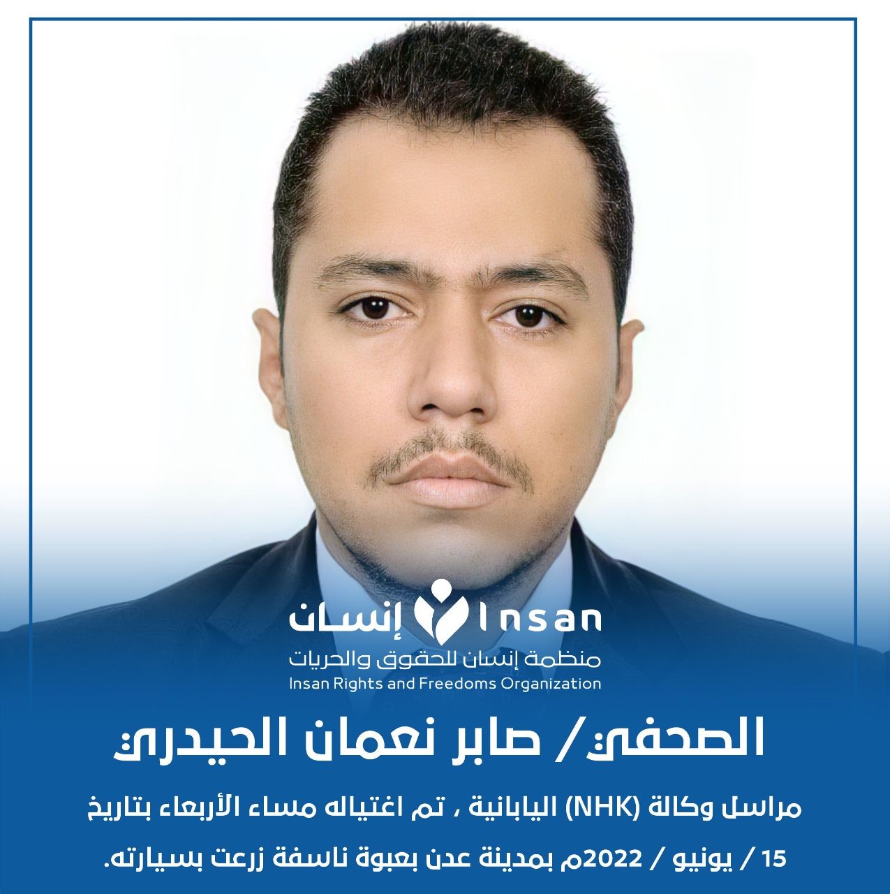إن منظمة إنسان للحقوق والحريات تدين إغتيال الصحفي صابر الحيدري، وجميع الأعمال الإجرامية والاغتيالات التي تطال المدنيين بشكل عام والصحفيين بشكل خاص.