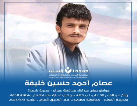 تدين منظمة إنسان للحقوق والحريات وتستنكر جريمة اغتيال السيد/ مؤيد سعيد حميدي