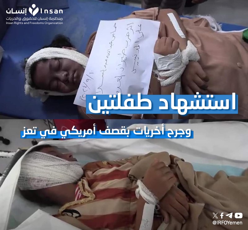 وقالت مصادر صحية إن الطيران الأمريكي البريطاني شن غارتين جوار مدرسة أم المؤمنين عائشة في منطقة الجند بمحافظة تعز، ما أسفر عن استشهاد طالبتين وإصابة تسع أخريات بجروح مختلفة.