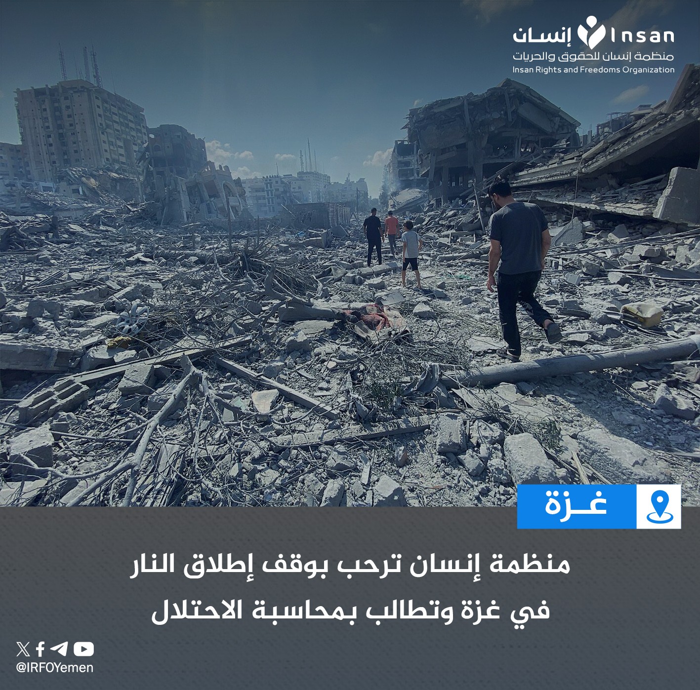 وجددت منظمة "إنسان" التأكيد على التزامها بالعمل من أجل تحقيق العدالة ومناصرة حقوق الإنسان، مشددة على أن أي تسوية أو هدنة لا يجب أن تغفل محاسبة المسؤولين عن الجرائم وضمان إنصاف الضحايا وإعادة بناء ما دمره العدوان.