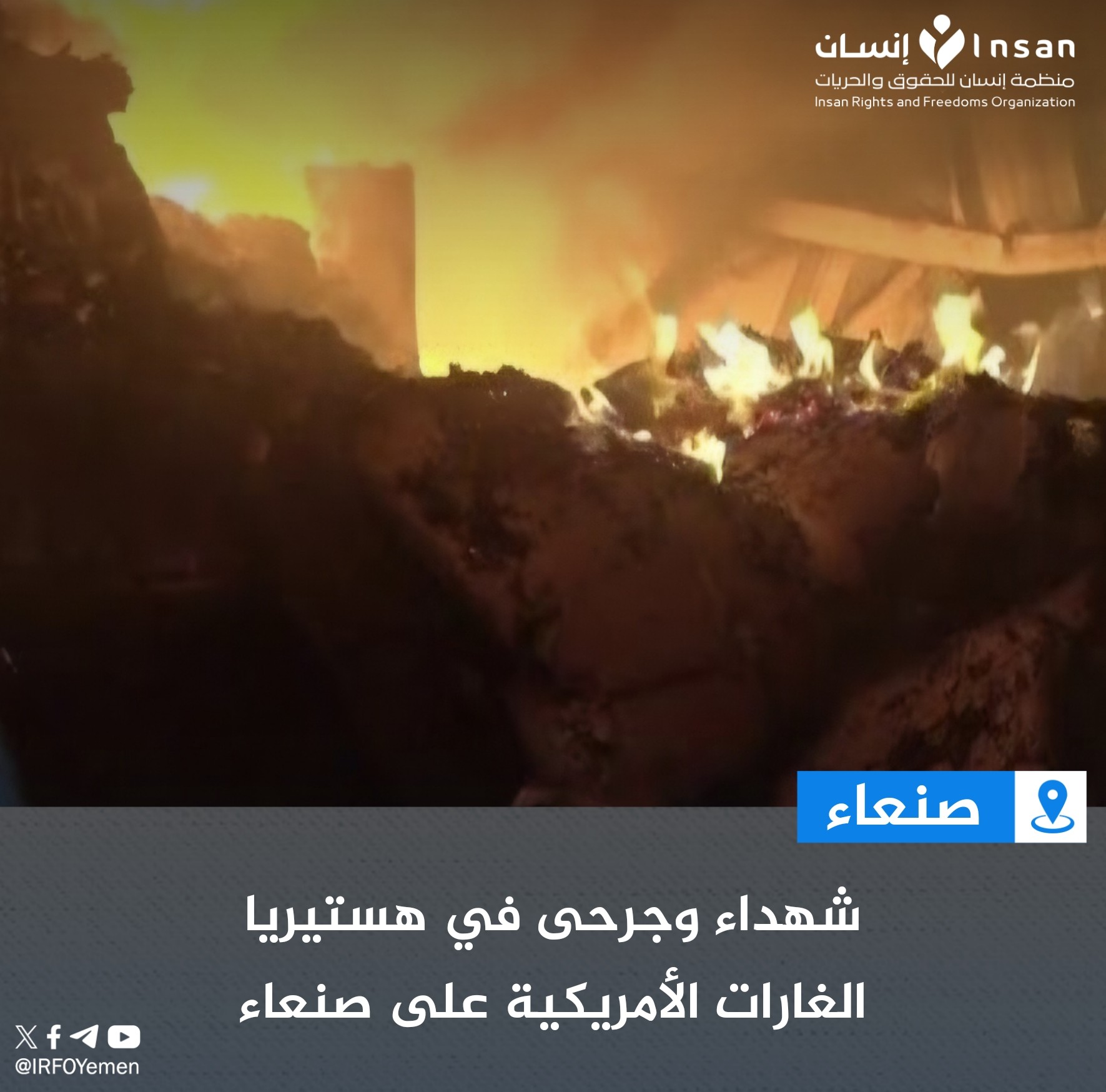 وشنت طائرة حربية أمريكية، فجر اليوم الخميس، غارة استهدفت كسارة أحجار في منطقة العرقوب بمديرية خولان الطيال، شرق العاصمة صنعاء، ما أدى إلى سقوط ضحايا من المدنيين.