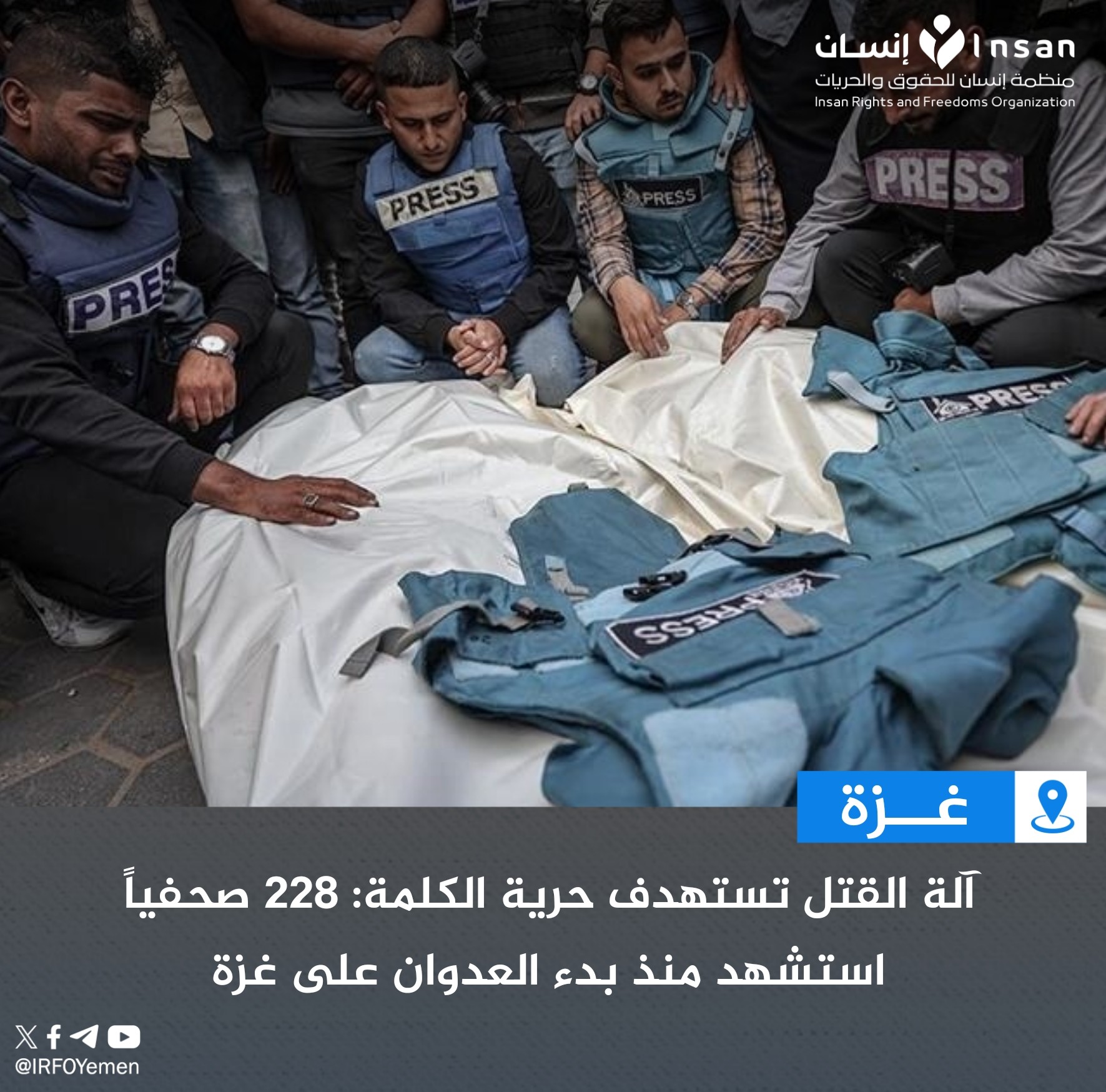 والضغط الجاد لوقف العدوان وحماية الكوادر الإعلامية من القتل والاستهداف المباشر