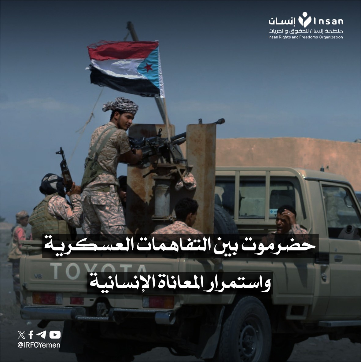 إن معاناة حضرموت مرشحة للتفاقم ما دامت القرارات المصيرية تُتخذ خارج الإرادة الوطنية، وما لم يتم تحييد المدنيين عن الصراعات العسكرية والسياسية، وتغليب مصلحة الوطن والشعب اليمني فوق كل اعتبار، بوصف ذلك مدخلًا أساسيًا لأي استقرار حقيقي ومستدام.