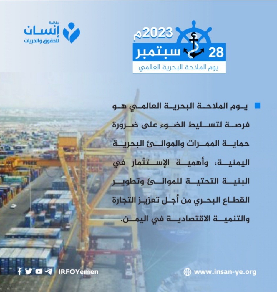 يوم الملاحة البحرية العالمي هو فرصة لتسليط الضوء على ضرورة حماية الممرات والموانئ البحرية اليمنية، وأهمية الإستثمار في البنية التحتية للموانئ وتطوير القطاع البحري من أجل تعزيز التجارة والتنمية الاقتصادية في اليمن.