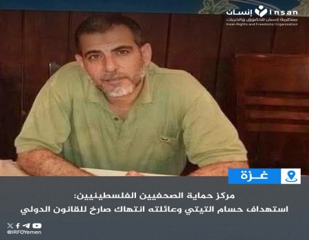 مركز حماية الصحفيين الفلسطينيين: استهداف حسام التيتي وعائلته انتهاك صارخ للقانون الدولي