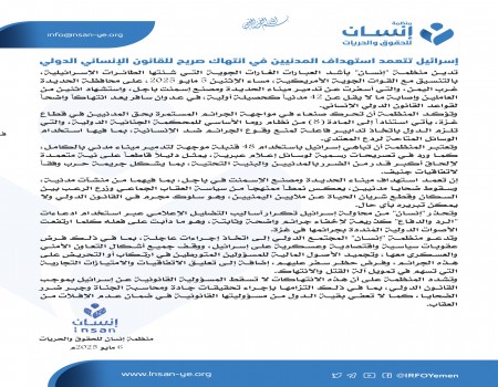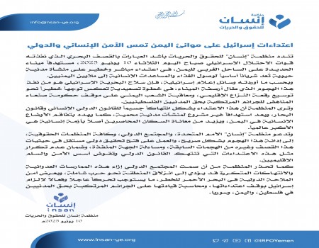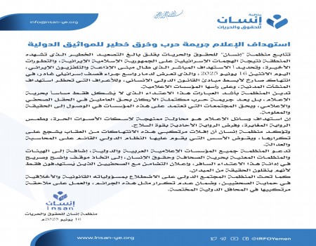 منظمة إنسان: العدوان الأمريكي على اليمن يشكل تهديداً للسلام الدولي