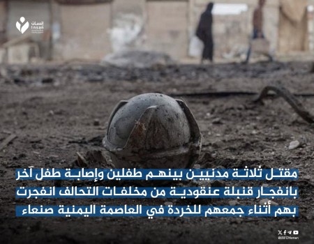 مقتل ثلاثة مدنيين بينهم طفلين وإصابة طفل آخر إثر انفجار قنبلة عنقودية من مخلفات الحرب في العاصمة صنعاء