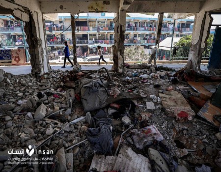 منظمة إنسان للحقوق والحريات تدين قصف سلاح الجو الإسرائيلي مدرسة الجاعوني وسط غزة