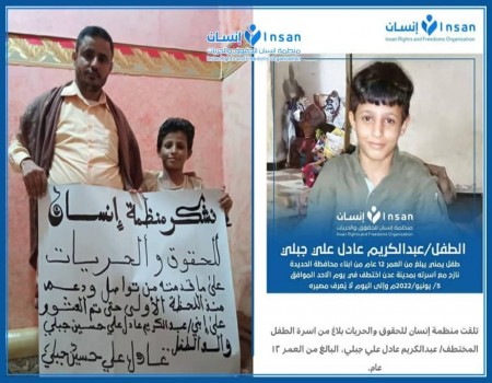 منظمة إنسان تساهم في العثور على الطفل المفقود عبدالكريم جبلي